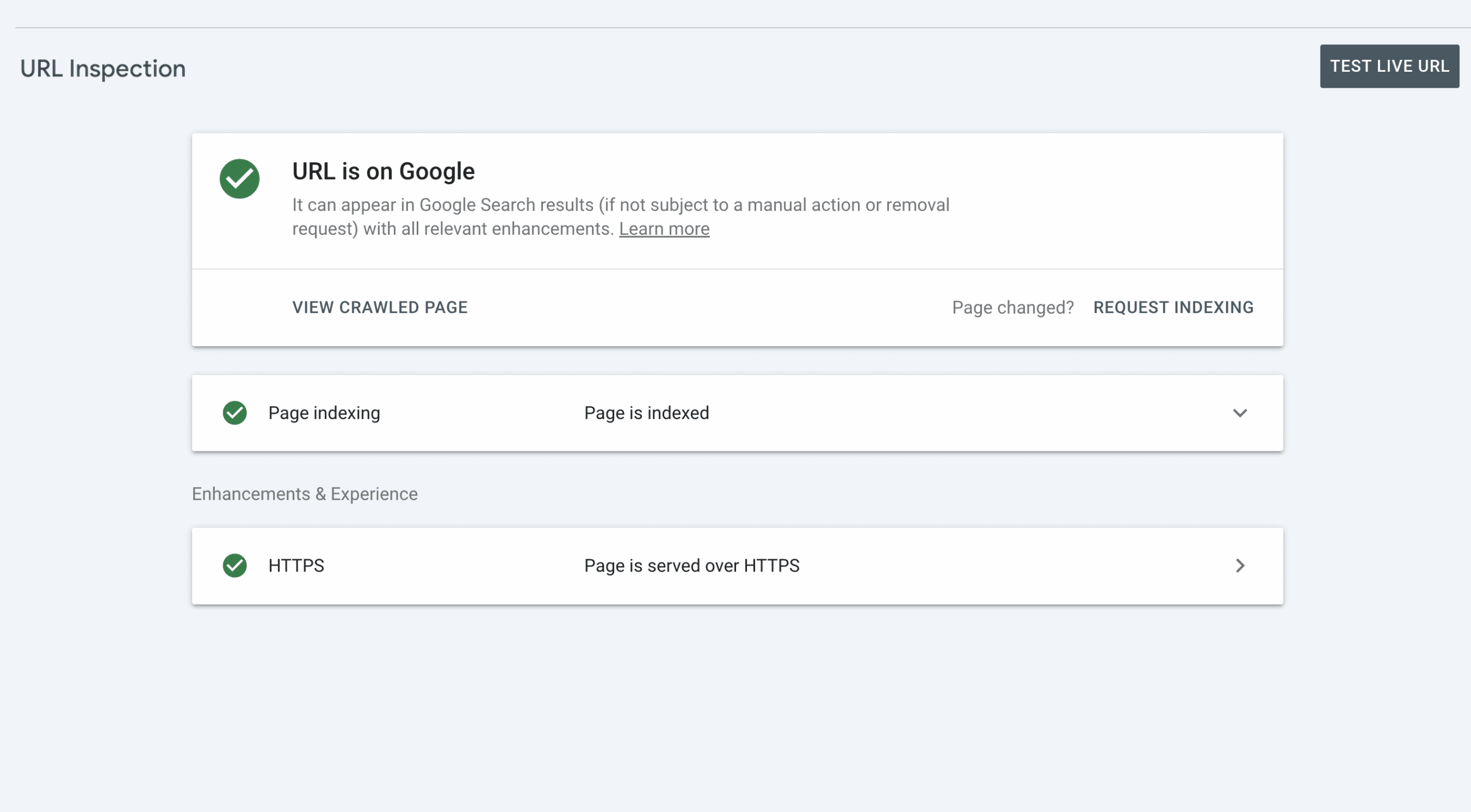 To do this, paste the full URL of the page you want recrawled into the top search bar and press enter. This will let you know if the page is indexed or not, and let you “request indexing”. This action sends the page into Google’s priority crawl queue, sending their spider to revisit your page and see the changes.